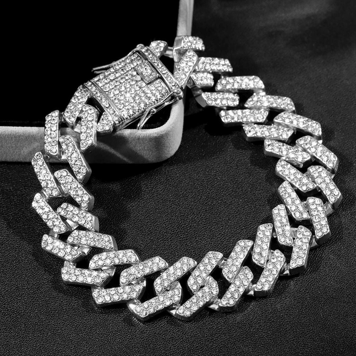 Elevate your style with this stunning iced-out Cuban link bracelet. Crafted with high-quality alloy and encrusted with dazzling rhinestones, this bracelet offers a bold and luxurious look that shines from every angle. Its secure clasp ensures comfort and durability, making it perfect for parties, special occasions, or everyday wear. A must-have statement piece for anyone who loves jewelry with a touch of brilliance.