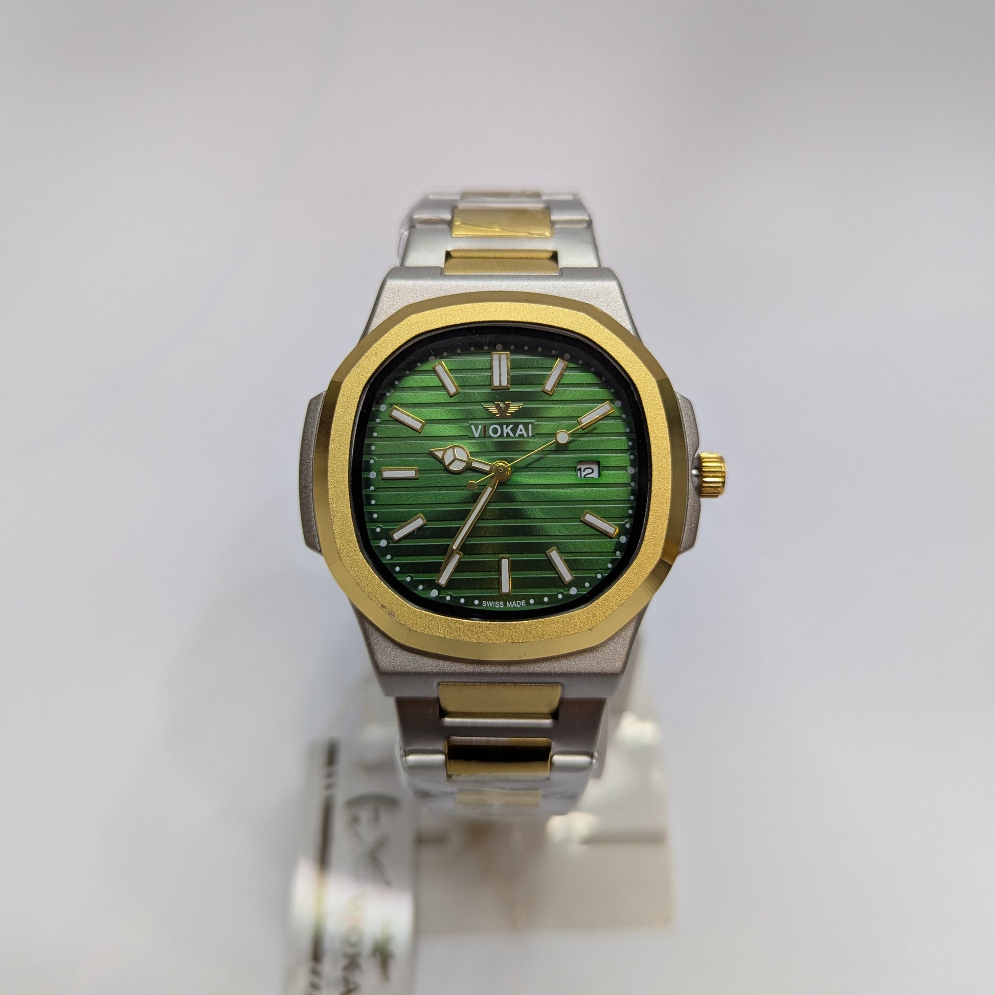 Viokai Two-Tone Stainless Steel Wrist Watch with Green Dial